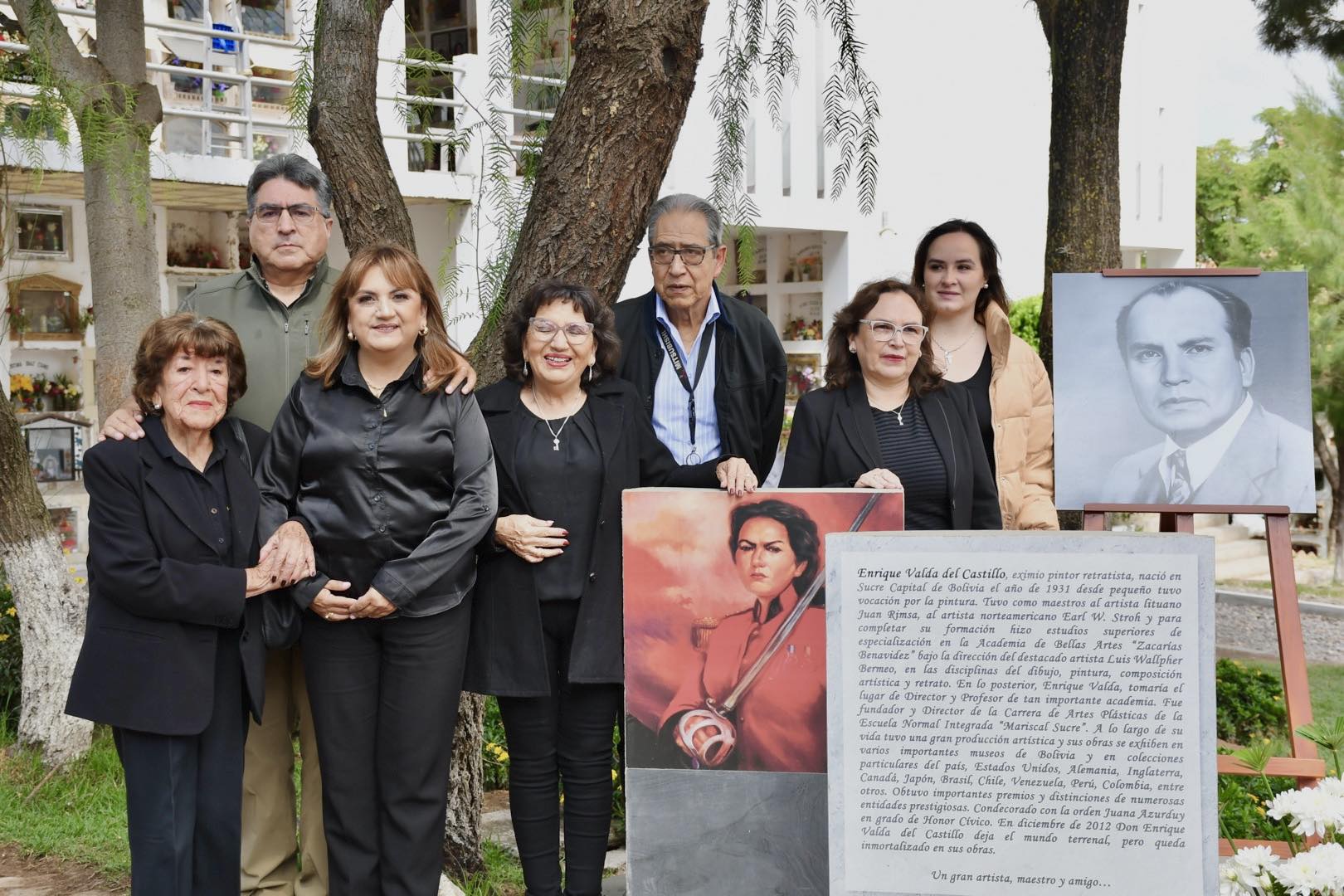 En un emotivo acto se llevó acabo el descubrimiento del túmulo del destacado artista plástico Profesor Enrique Valda del Castillo, realizado en el Paseo de los Artistas del Cementerio General de Sucre. La actividad tuvo como objetivo rendir homenaje y otorgar el valor que merecen los artistas chuquisaqueños que aportaron significativamente al arte y a la identidad cultural del país.